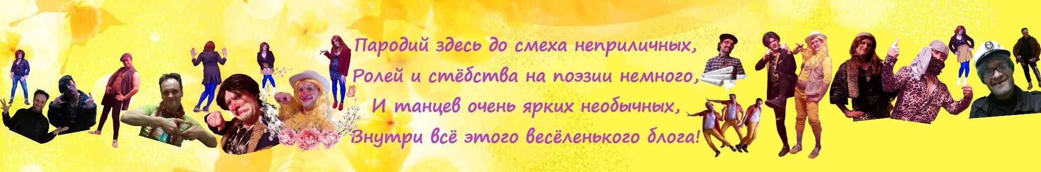 Мои юмористические заморочки: актёрская игра, поэтическое и съёмки с животными. Всё выставленное здесь в этом БЛОГЕ специализация на танцах, скетчах, рифме. Интересных и приятных просмотров!