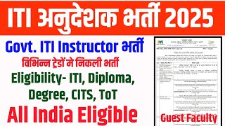 Latest ITI Instructor Vacancy 2025-2026 Out | अनुदेशक भर्ती 2025 | ITI Instructor Guest Faculty 2025