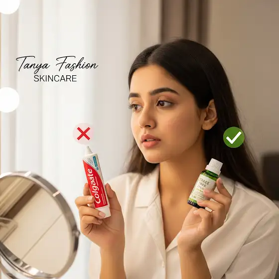 β Sahi Tarika: Pimple treatment ke liye tea tree oil ya salicylic acid wale products use karo.