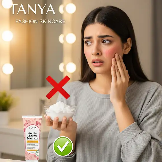 β Sahi Tarika: Mild exfoliator use karo with fruit enzymes ya gentle beads β safe for regular use.