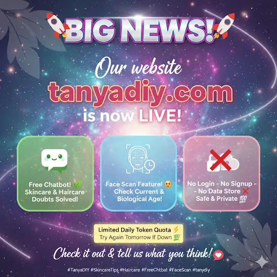 #TanyaDIY #SkincareTips #HaircareTips #FreeChatbot #GlowNaturally #UpcomingWebsite
