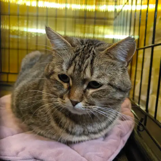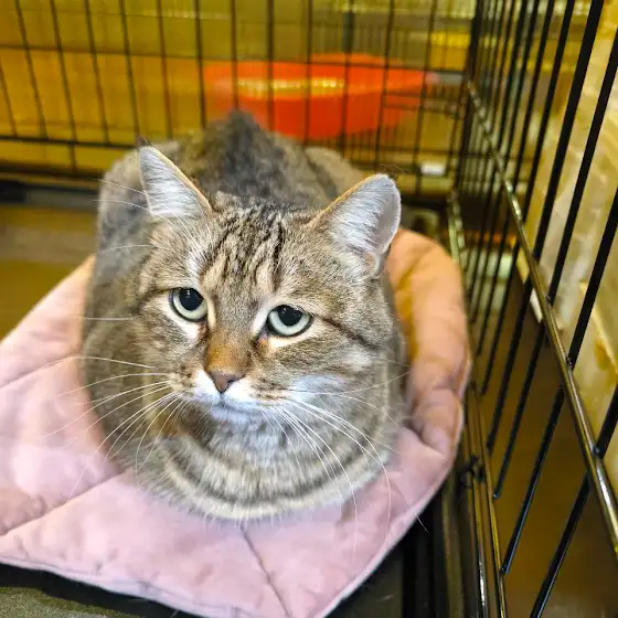 Для такой социальной кошки жизнь в тесном боксе — настоящая пытка. Она жалуется каждому проходящему мимо, тянет лапки и умоляет забрать её отсюда. Ей не нужно много места, ей просто нужны вы и возможность уткнуться в тёплый бок.