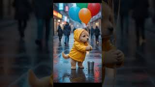Lonely Puppy Selling Balloons on Rainy Street #LonelyPuppy, #RainyDayMagic, #HeartwarmingStory, #Cut