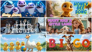 Nursery Rhymes Compilation for Kids | Bingo, Hush Little Baby, Honey Bee, Baby Shark, Five Lil Ducks