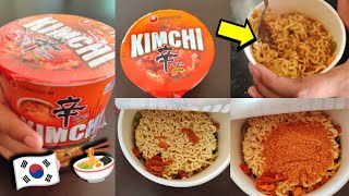 Hot and spicy Korean noodles | Korean cup noodles | Nongshim Shin kimchi cup noodles |Kimchi noodles