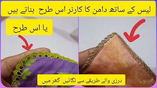 Chalk daman pr palty k Sath lace lagany ka tareka لیس کے ساتھ دامن کا کارنر بنائیں پروفیشنل طریقے سے