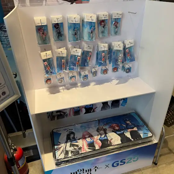 [명일방주 x GS25]장패드 15,900원아크릴 키링 9,000원캔뱃지 3,000원키캡키링 9,900원합정 프리미엄점 한정선착순 150명 가챠 (gs페이로 결제 시)1등 대형 아크릴스탠드 (5명)2등 키캡키링(LD버전) (15명)나머지 무료빵 (130명)
