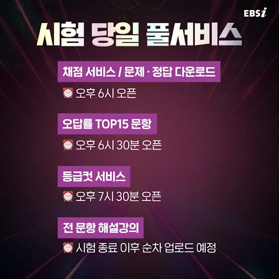 올해 마지막 전국 단위 시험 🔥 10월 모의고사 🔥 ✅ 빠른 채점 & 적중률 1위 등급컷 ✅ 오답률 TOP 15 + AI 추천 문항 ✅ 전 문항 해설강의 ✅ 맞춤대학 미니배치표 ✨ 추석 연휴엔 EBSi와 함께 10모 대비! 📅 10월 14일, 풀서비스에서 만나요 🖐️ 💯10월 모의고사 준비하기💯 bit.ly/3IR9YmM