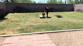 My Border collie practicing and walk up with ball