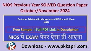 Customer Relationship Management CRM Domestic Voice (661) | Nios Previous Year Solved Question Paper