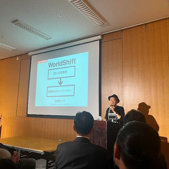 その後、そのまま京都で谷崎テトラさんが主催するWorldShiftフォーラムに登壇させていただいたのですが、とにかく全員の話が最高でした!死ぬほど濃いメンツが10分ターン制で矢継ぎ早にぶちかましていく世界観はとにかく爽快!おもろかったなー
