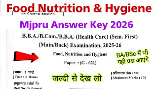 food nutrition and hygiene bsc 1st semester mjpru answer key 2026 | co curricular 1st semester mjpru