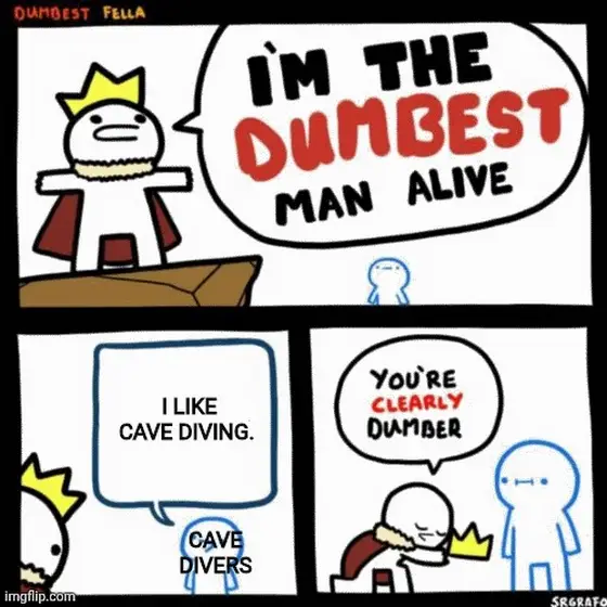 Two memes about cave diving.
