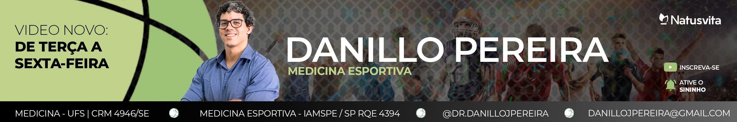 Fala galerinha, beleza? Sou Danillo de Jesus Pereira, médico do esporte, formado em medicina pela Universidade Federal de Sergipe (UFS) e fiz residência médica em Medicina Esportiva pelo Instituto de Assistência Médica ao Servidor Público do Estado de São Paulo (IAMSPE).