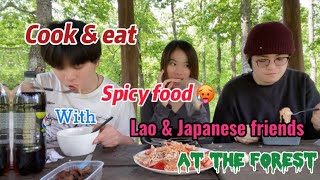 Cook & eat spicy food 🥵 with Lao & Japanese friends at the forest