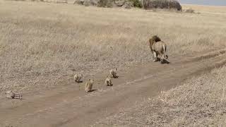 Lion dad tries to ditch his kids#animals #shot β β β βββrana tube1 please subscribe