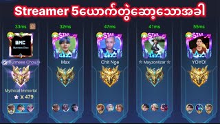 Streamer 5ယောက်Rankတူတူဆော့သောအခါ😱