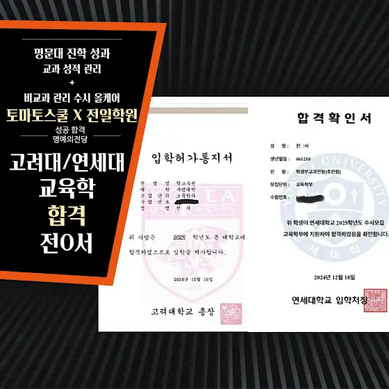 🎊2025 연세대 교육학과,고려대 교육학부 합격 전O서 학생 축하합니다🎊