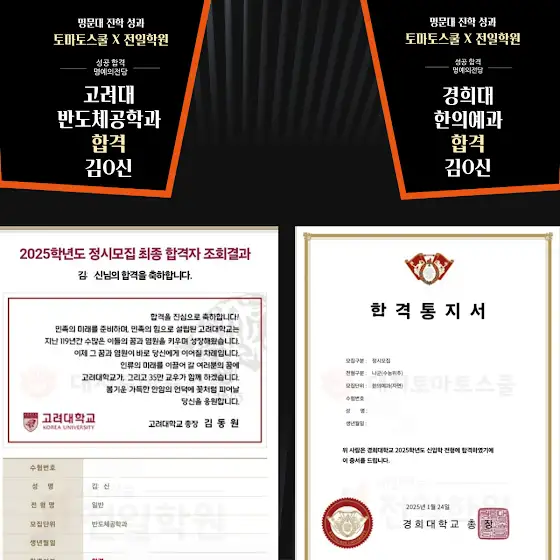 🎊2025 경희대 한의예과 + 고려대 반도체공학과 합격 김O신 학생 축하합니다🎊