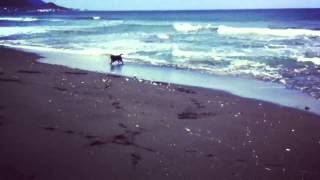 甲斐犬ミミ 春の海を疾走する♪