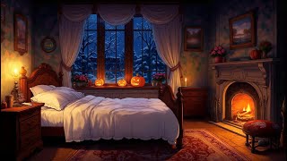Rainy Halloween Night 1940sπ Cozy 1940s fireplace with jazz music | Oldies Jazz from Another Room