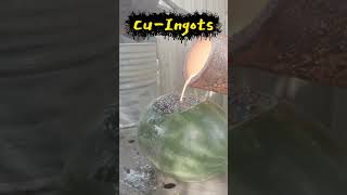 Metal casting and metal melting scrap copper into beautiful bullion artwork-ASMR metal melting