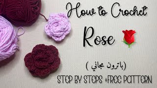 #crochet Crochet Rose 🌹free tutorial + patter | تعلمي طريقة عمل وردة كروشيه خطوة بخطوة + باترون مجان