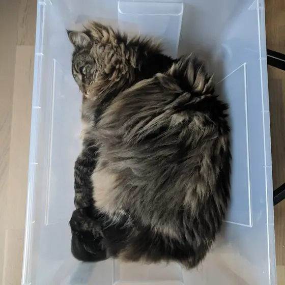 This photo is not an illusion. The box really is that small. Moss just squeezed himself in, and he feels wonderful.