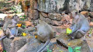 Monkey lunch time with little ones nearby