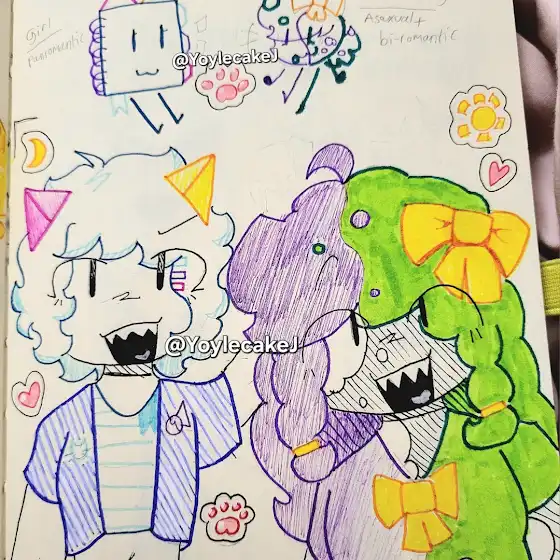 hi guys im probably working on my really late 200k special and my new ocs uhh i know its really late sorry its just a big side project and its taking a long time because my mental health dropped halfway through making it and I'm recovering, thanks i love you all π