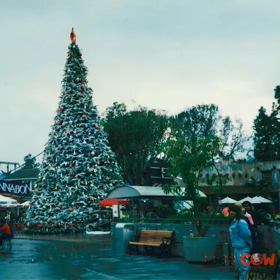 From the Cow Missing archives. Captured in 2002, the Christmas tree stands proudly in Back to the Future Plaza at Universal Studios Hollywood. #Universal #ThemeParkHistory @universalstudioshollywood
