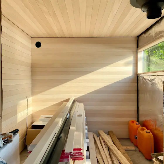 Things are moving along. Stay tuned for episode 5 of the sauna build!