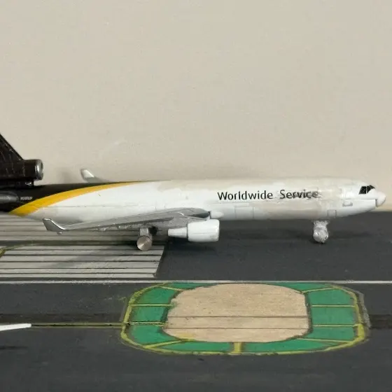 (Picture down below is a Daron UPS Md-11f registered as N281UP departing my fictional model airport of Silver Mesa Regional Airport)