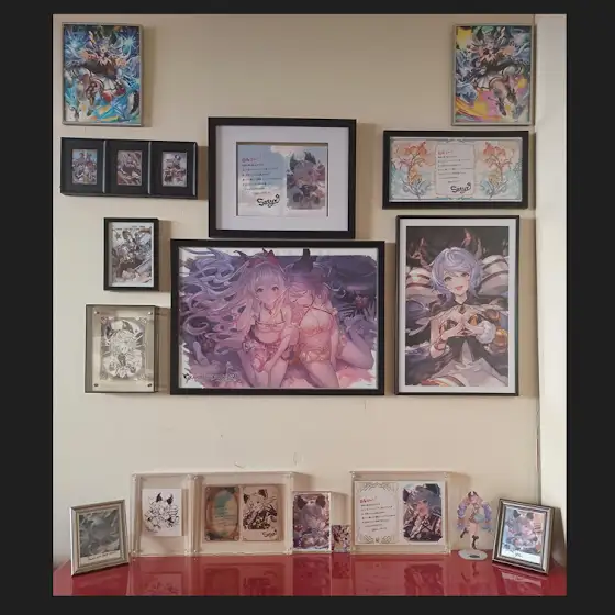 Given that Shadowverse Worlds Beyond had given Satyr two new beautiful pieces of Art, I opted to frame them in Steel Frames and place it with the rest of my collection. The Collection is seen in the 2nd Picture of this post. I picked these specific frames to match Satyr's twin-tails.