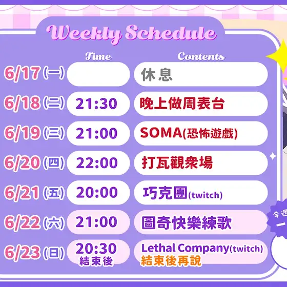 【6月17~6月23號的週表】