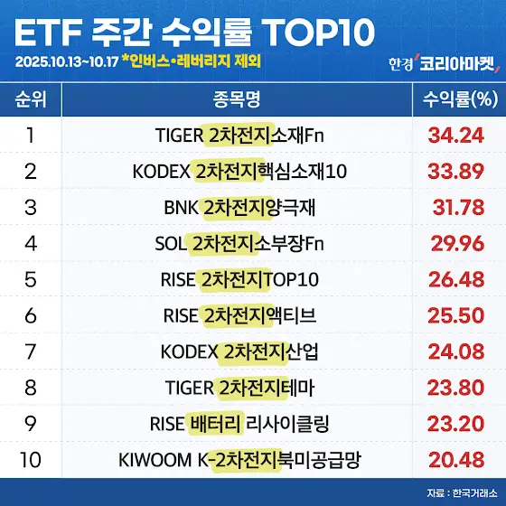 10월 셋째 주 ETF 시장은 2차전지 테마의 독무대였습니다.