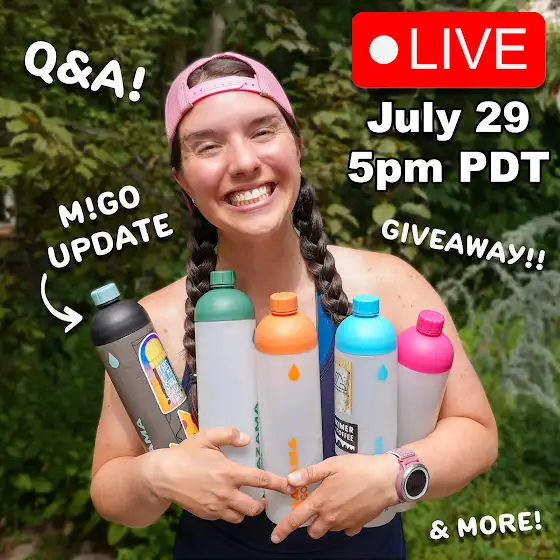Hey friends! 🚨ANNOUNCEMENT TIME! 🚨I’m doing an impromptu livestream here on YouTube tomorrow, July 29th, at 5pm Pacific Time! What’s the occasion, you ask!? WELL! We are just three days away from finally restocking the M!GO water bottle, so I’m coming to you LIVE to share updates on inventory, new colors, and some exciting accessories that are currently in progress! The livestream will also feature a GIVEAWAY for two M!GO bottles stocked full of LMNT Electrolytes 😎 As always with my livestreams, I’ll also be answering any questions you have about backpacking, the channel, and my upcoming adventures!