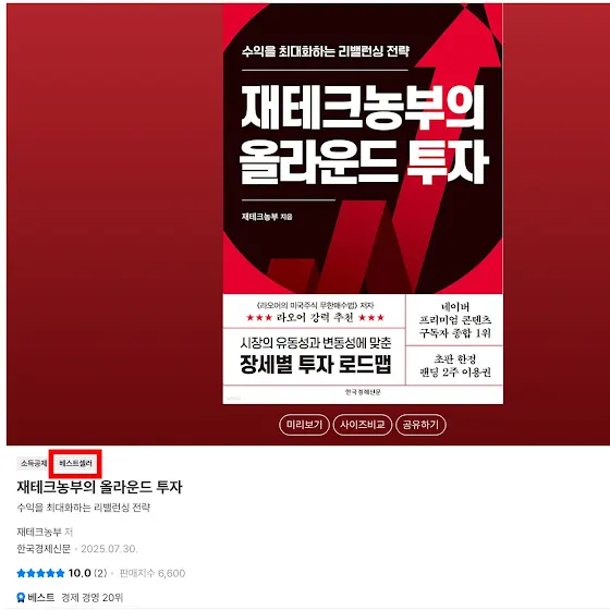 3일 전 출간된 저의 첫 책 『올라운드 투자』가 출간 즉시 베스트셀러에 올랐습니다.