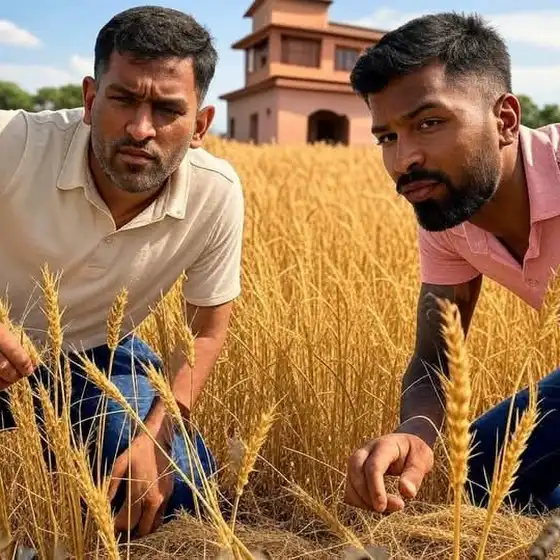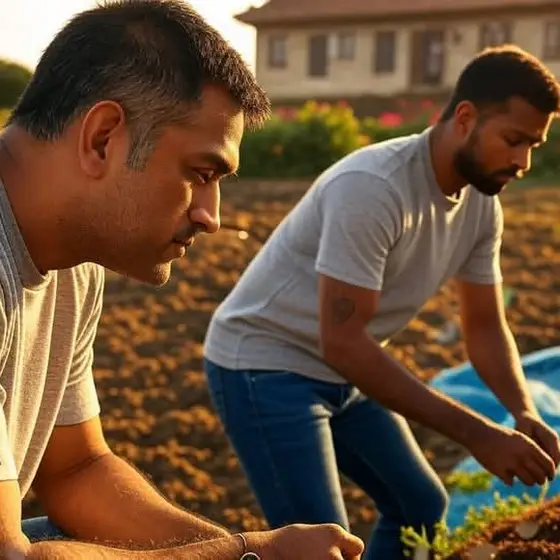 अपने फर्म में हार्दिक पांड्या के साथ महेंद्र सिंह धोनी