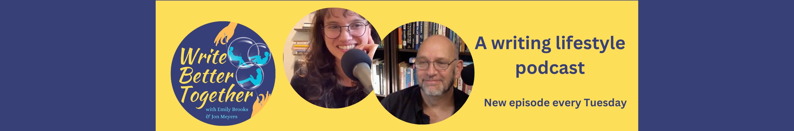 Write Better Together is an interactive podcast hosted by writer/educator Emily Brooks and writing instructor/conference speaker Jon Meyers—designed with YOU in mind. Write Better Together incorporates your needs and input into every aspect of building a community of encouragement, support, and hope to make you comfortable exploring the writer lifestyle more deeply.