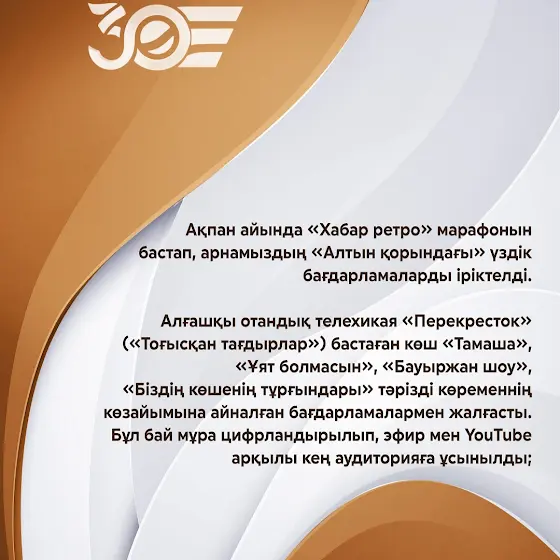 Осы отыз жылдың жүзінде біз тек эфирде ғана емес, елдегі әр көрерменнің жанынан табыла білдік❤️