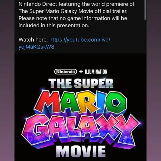 Hi y’all there’s a Mario Galaxy Movie Direct happening this Wednesday I will try to go live after school to see it on my twitch