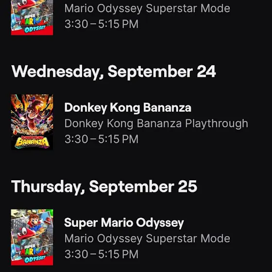 Hi y’all here is my stream schedule for this week on twitch