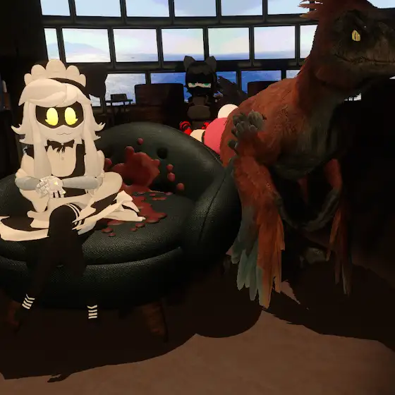 Someone had an avi that had custom props in the "Terros of Nowhere" Lobby. So, ya we got a couch to watch the big screen as some monster deleted all the players in the game for our entertainment. Good times.