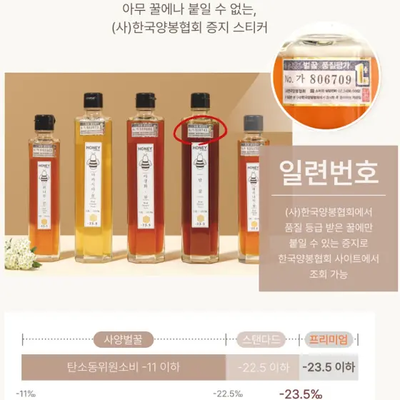 -22.5% 이상일 경우 사양꿀 이라 잘 구별하셔야해요