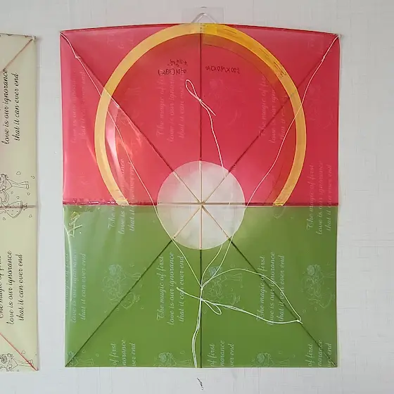 2025년 6월 20일 作 (시접이 되는...영어 문자가 프린팅된 비닐 방패연, 연 머리 38cm)