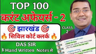Jharkhand Civil Court Clerk Exam 2025 | TOP 100 Current Affairs | Current Affairs in Hindi | Das Sir