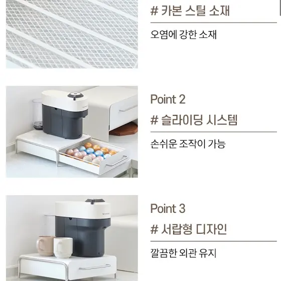 📍 Check point ▪️ 28년 경력의 금속제작업체 국내생산 ▪️ 틈새공간 활용 가능한 미니멀한 사이즈 ▪️ 슬라이딩, 2단 선반으로 식기량 따라 확장가능 ▪️ 녹과 부식에 강한 스테인리스 304 ▪️ 전해연마제품으로 연마제제거 없이 사용가능 ▪️ 와이어 이중접합으로 날카로운 부분 없는 안전성 ▪️ S사이즈 물받침대는 더 길고 넓게 업그레이드