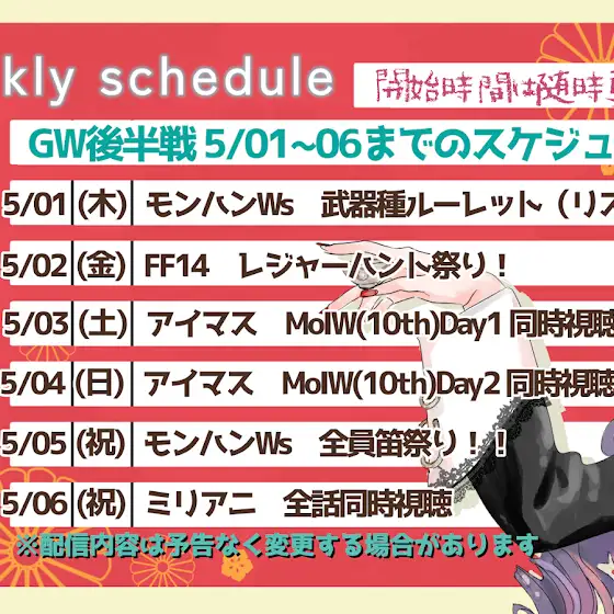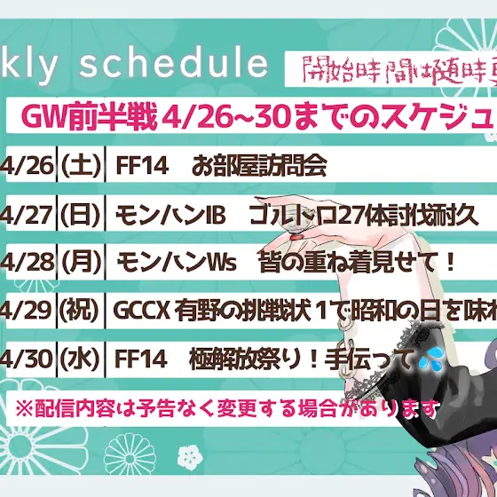 【GW中の配信スケジュールだぞ!!】