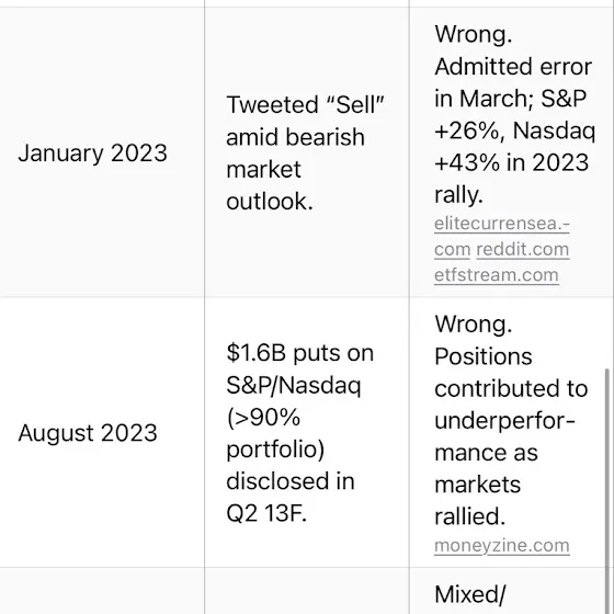 大賣空原型Michael Burry 關閉旗下基金,他自己坦言已有一段日子與市值脫節。網絡上有人數算他過去數年的看空預測,錯的居多。